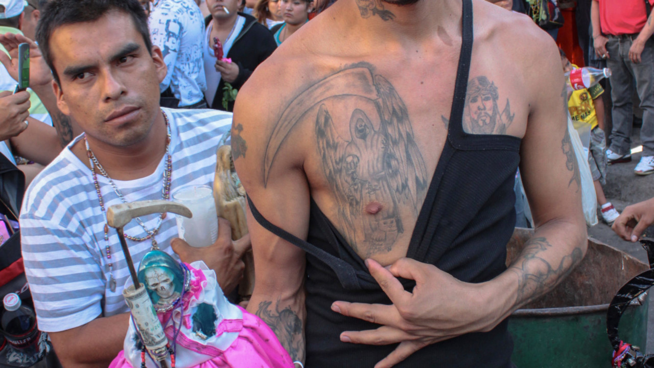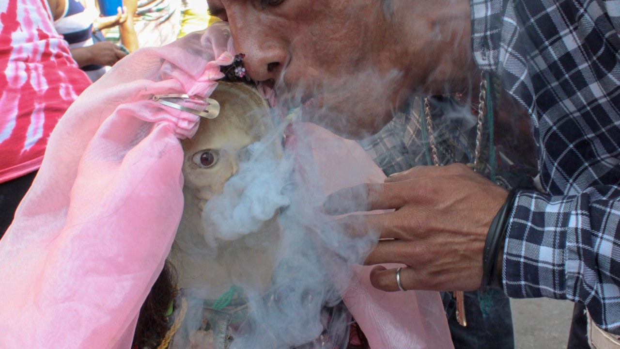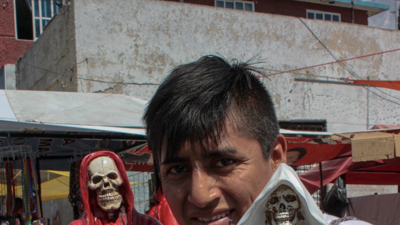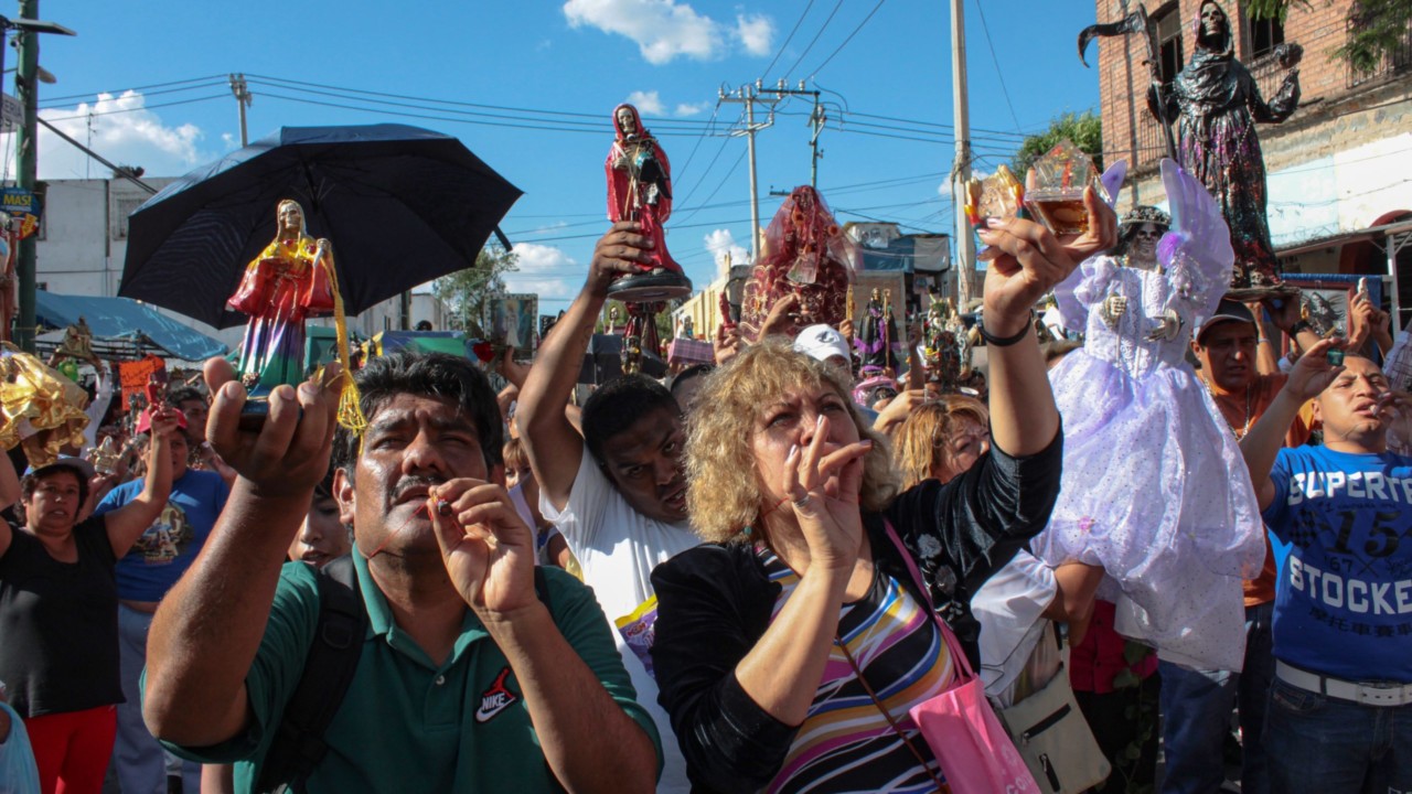 Muy temprano se empieza a poblar la calle principal, donde se encuentra el altar de la Niña Blanca. Personajes van y personajes vienen, con ansia de que todos participen. Poco a poco van llegando los fieles, con sus representaciones personales. Muy presentables para la ocasión. Todas son recibidas con un viva y, claro, el riguroso pequeño chorro de mezcalito o el humo de las verdes matas que se les comparte con gran cariño. Todas son llevadas primero al altar y a la bendición de bienvenida con Doña Queta. Ahí, alguno de los fieles deja en el espacio propio veladoras que iluminan, una ambientación de señorío y esperanza. La calle se torna en un ir y venir de parroquianos, con sus niñas en brazos. Se deciden por algún espacio y se instalan, preparando y adornando su pequeño altar temporal. Todos a la espera de que se llegue la hora acordada (al filo de las 17 horas), para al unísono realizar los rezos propios en honor a la señora tentación. Sí. Ella, que constantemente nos invita a seguirla y llevarnos al sueño eterno. Se llena la calle de vítores, en los que llega el momento de que todos la eleven para que sobresalga del resto. Entre plegarias, peticiones y llanto, todo transcurre lentamente, esperando que el festejo nunca termine. Todos mostrando su identidad muy personal, entre vestimentas, peinados y tatuajes. “Este soy yo y nada es igual a mí” o a la representación de la madre eterna que me acompaña. Al concluir los rezos, la ceremonia pasa a ser una gran fiesta en la que se combina la alegría y el fervor propio del mexicano y, en específico, de los fieles tepiteños. La luna despunta ya, entre la bruma del esmog y los altos edificios aledaños. Se cumple una fecha más, donde se rinde honor a la verdad más certera de la vida. Inicia la gran despedida. Todos, poco a poco, se dicen “¡Hasta pronto!”, en un gran abrazo fraternal, físico a simulado. “Nos veremos pronto, al siguiente primero del mes”. (Si es que la Niña Blanca no decide que sea antes.)