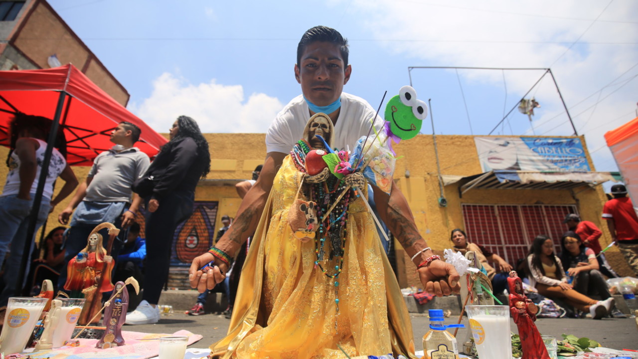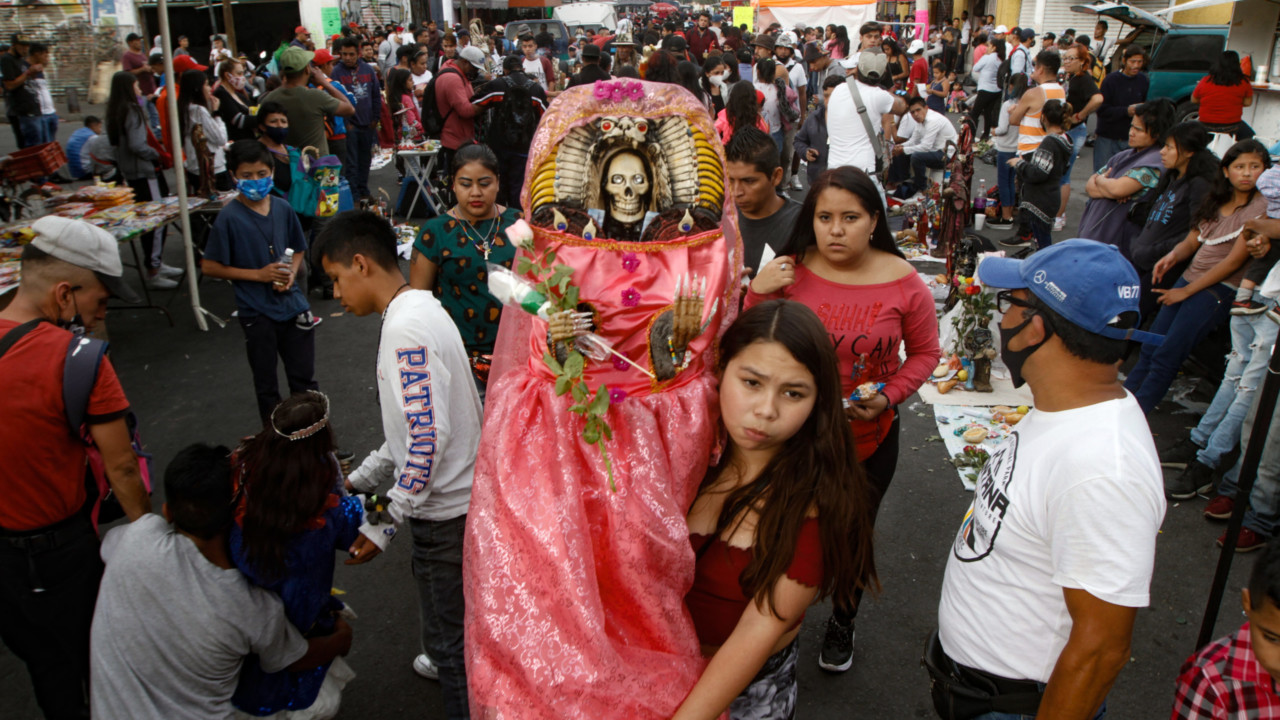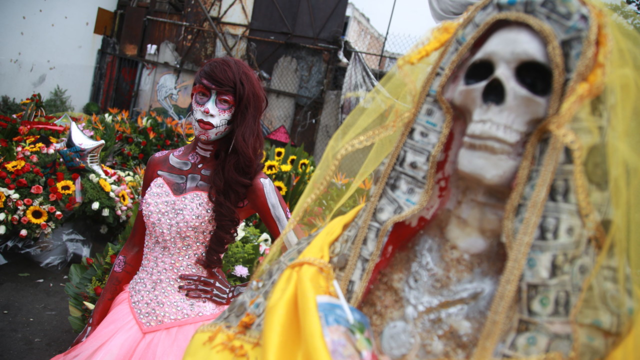 En mi primera visita al altar, la primera fotografía que me regaló el lugar fue una joven disfrazada de catrina fumando un cigarrillo, teniendo un momento de comunión entre ella y la Santa. Me quedé muy asombrado, ya que era un momento único, donde entendí que las palabras no verbalizan el sentir de la joven. Tal vez dio gracias por algún favor, como le llaman, o estaba orando para que su vida mejorara. No lo sé, pero estoy completamente seguro de que esos momentos en el altar pocas veces se repiten.